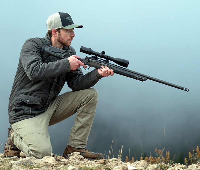 SUB-MOAModern chassis hunting rifle: lightweight carry, chassis rigidity, and match‑grade accuracy.
